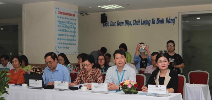 Ủy viên dự khuyết Trung ương Đảng, Phó Chủ tịch Hội LHPN Việt Nam, Chủ tịch Hội đồng Học viện Phụ nữ Việt Nam Tôn Ngọc Hạnh (bìa phải) tham dự hội thảo